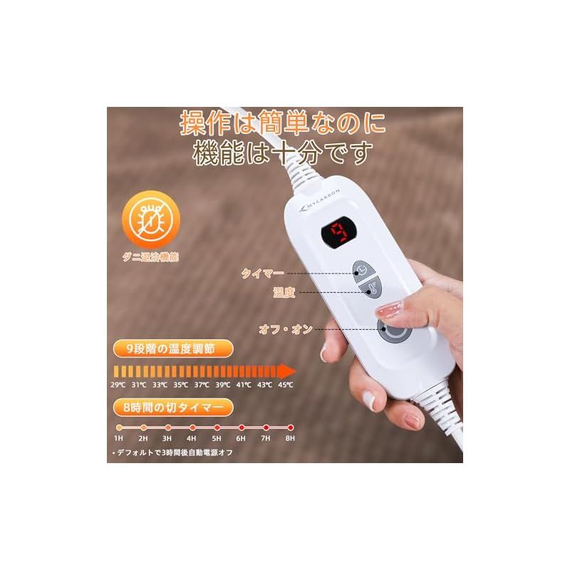 【コントローラー&保証】2.6mのコントローラー付き、ボタンを押すだけで使用でき、高齢者も子供も安心してご利用いただけます。MYCARBONから購入された電気毛布は、ご購入日から1年間の保証期間があります。万が一、何か不具合がありましたら、弊社にご連絡いただければ幸いです。ぜひ24時間以内に対応できます。