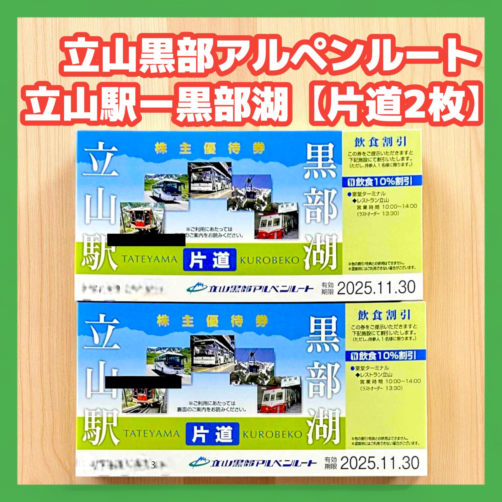 片道 立山黒部アルペンルート 株主優待券 立山駅ー黒部湖 ネコポス発送