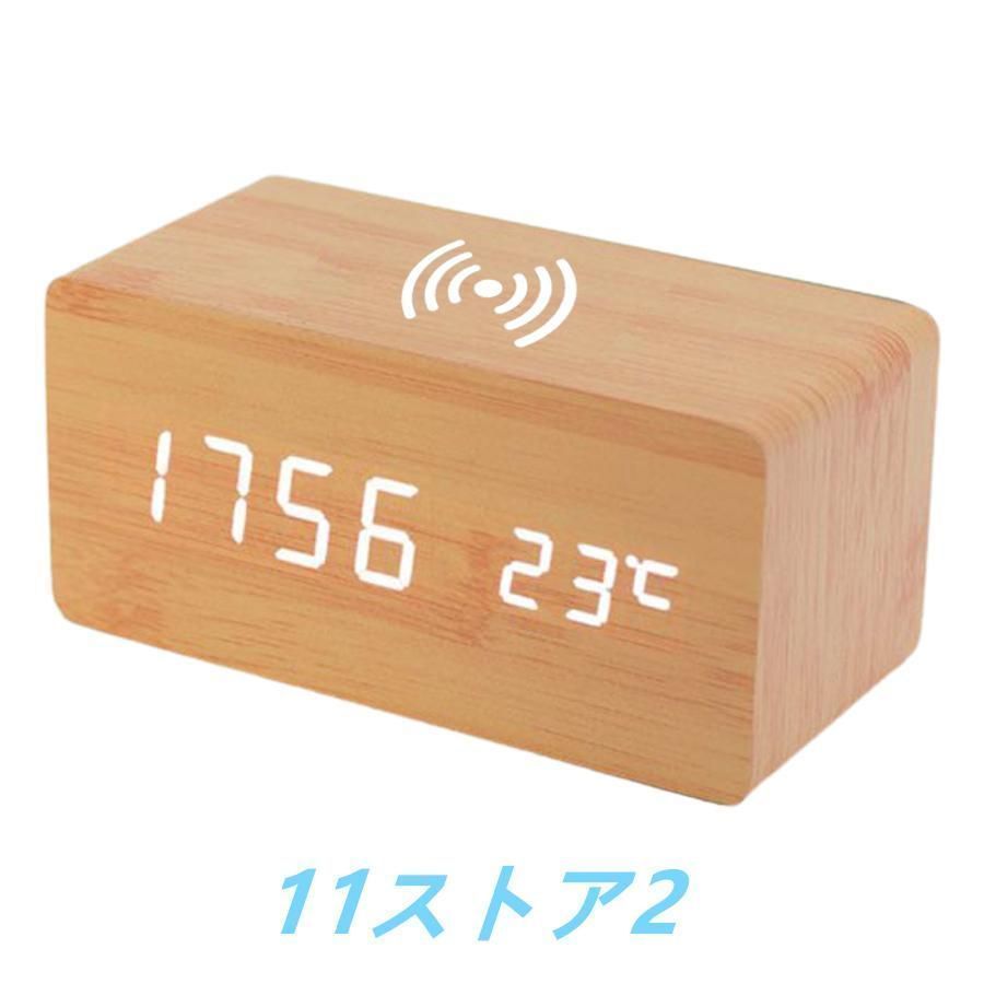 木目調デジタル時計Qi対応で楽々充電機能付き♪