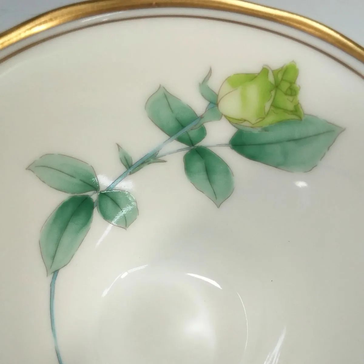 グリーンカップの内側に色違いのバラ模様です。専用箱に入れたままで未使用の長期保管品です。
