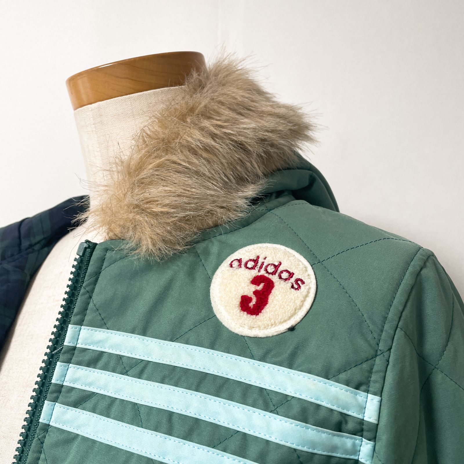 adidas アディダス キルティングコート アウター ファー付き フード キルティング グリーン 緑 中綿 ワッペン 3ライン Mサイズ Y 2 K 00 s 平成 ギャル グランジ Archive