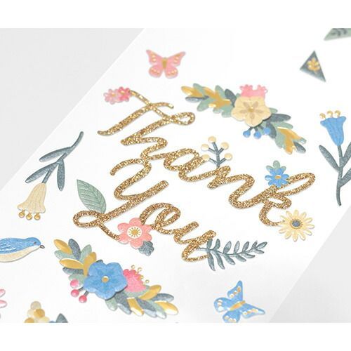 感謝のシーンを彩るタイトルシール。1シート買うだけでアルバムや色紙のデコレーションが完成する手軽なシールです。ギフトの定番である花をモチーフに、日常のちょっとした場面でも使いやすいように落ち着いたトーンでまとまっています。文字自体もラメで華やかにデザインされています。写真をとめるコーナーシールが付属されているので、写真と組み合わせてもお使いいただけます。【検索ハッシュタグ】#ミドリ#デザインフィル#シール#PCミュージアム#タイトル#ありがとう#花#フラワー