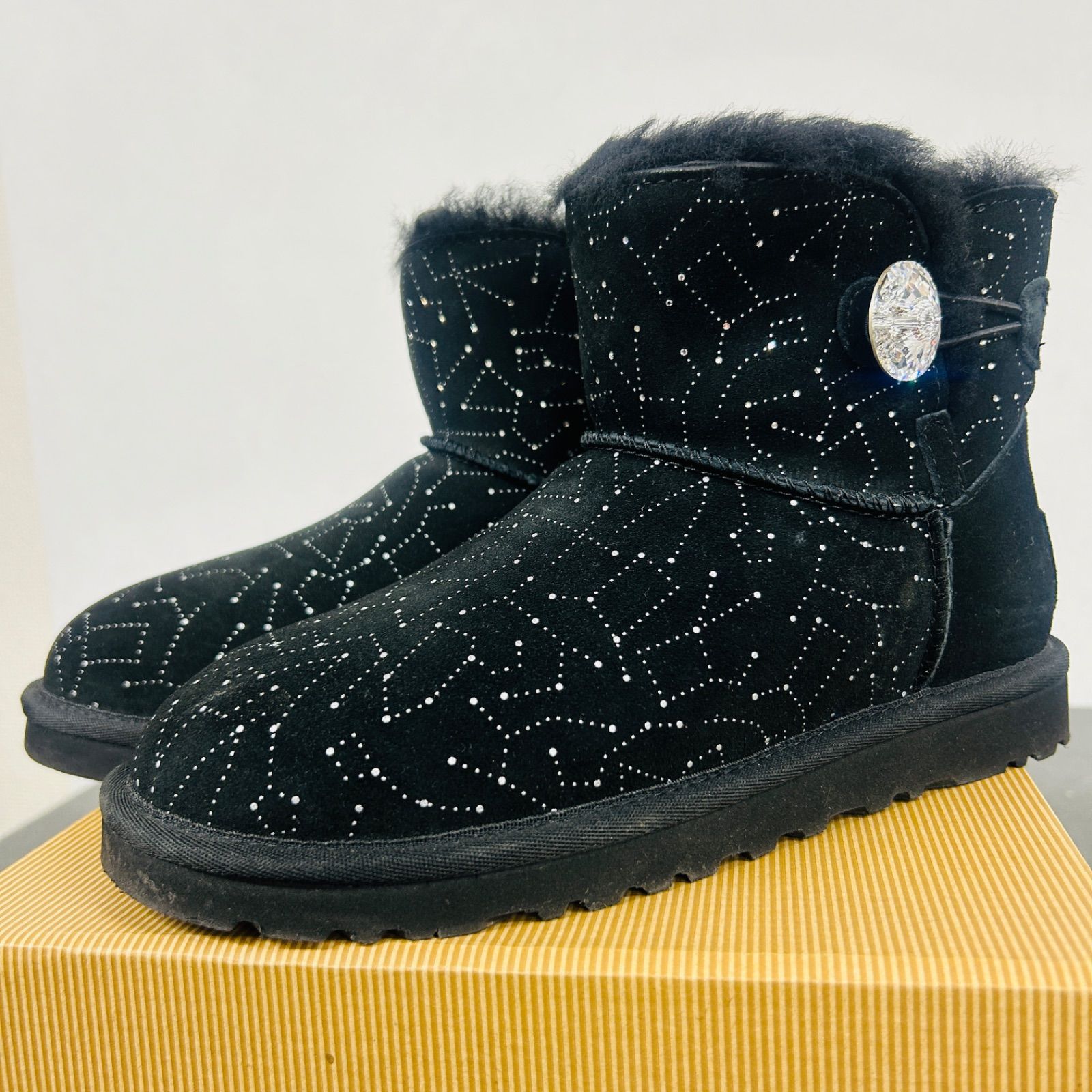 試し履きのみ UGG アグ ムートンブーツ ショートブーツ 黒 W ミニ ベイリー スワロフスキー 22 cm レディース