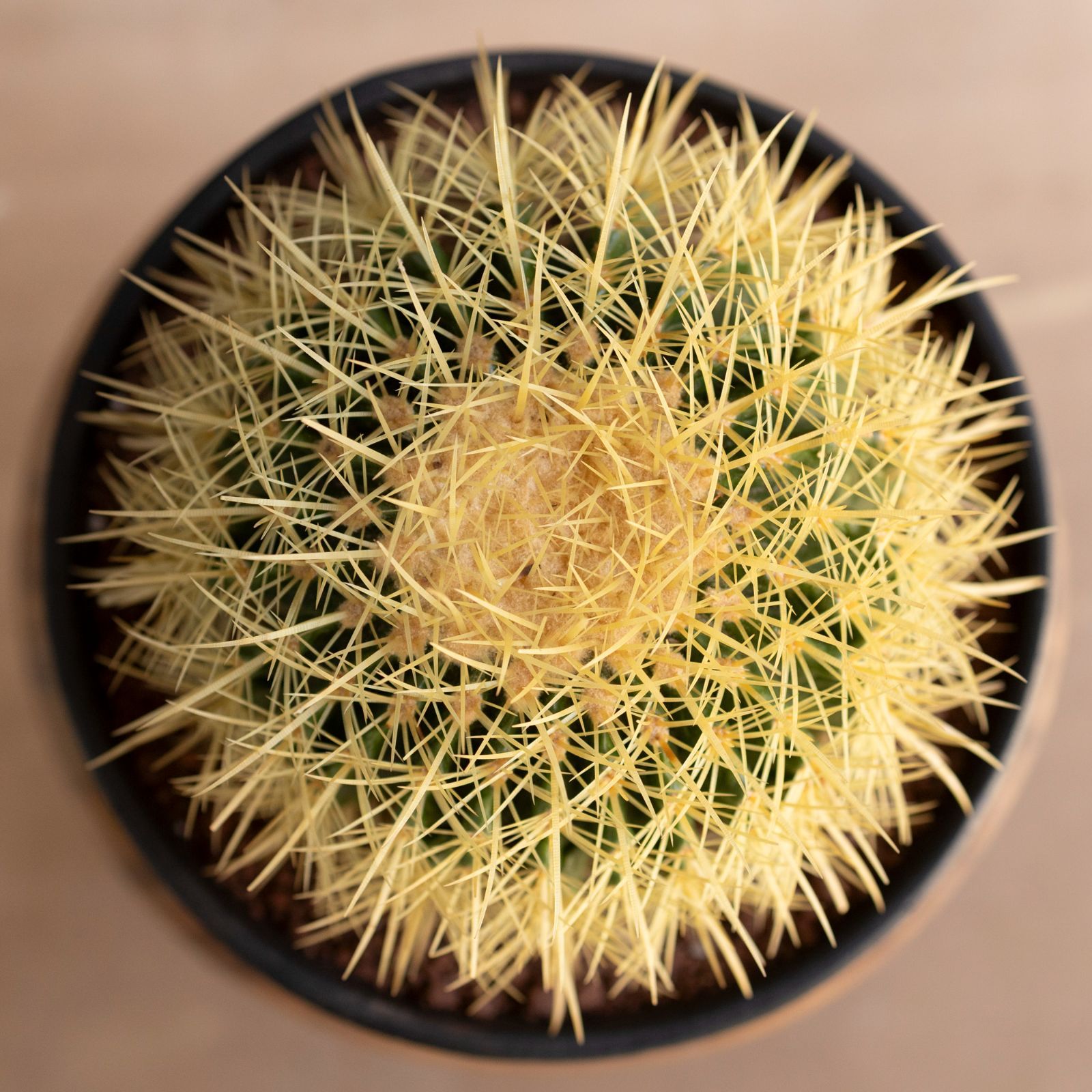 Echinocactus grusoniiという名の品種で黄金色の鋭いトゲで覆われているのが特徴的。