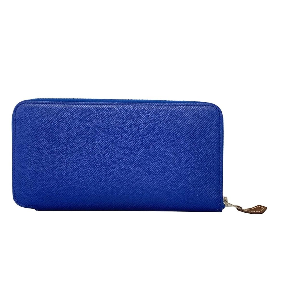 HERMES エルメス 長財布 アザップロングシルクイン ブルーフランス×ビスキュイ ラウンドファスナー シルバー金具