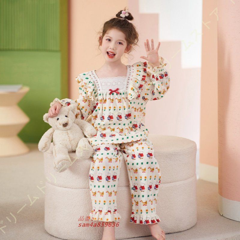 長袖 パジャマ キッズ 子供パジャマ 上下セット ガーゼパジャマ ルームウェア 部屋着 寝巻き セットアップ 寝間着 ロングパンツ 女の子 子供服 春秋 柄物 am 4 a 859636