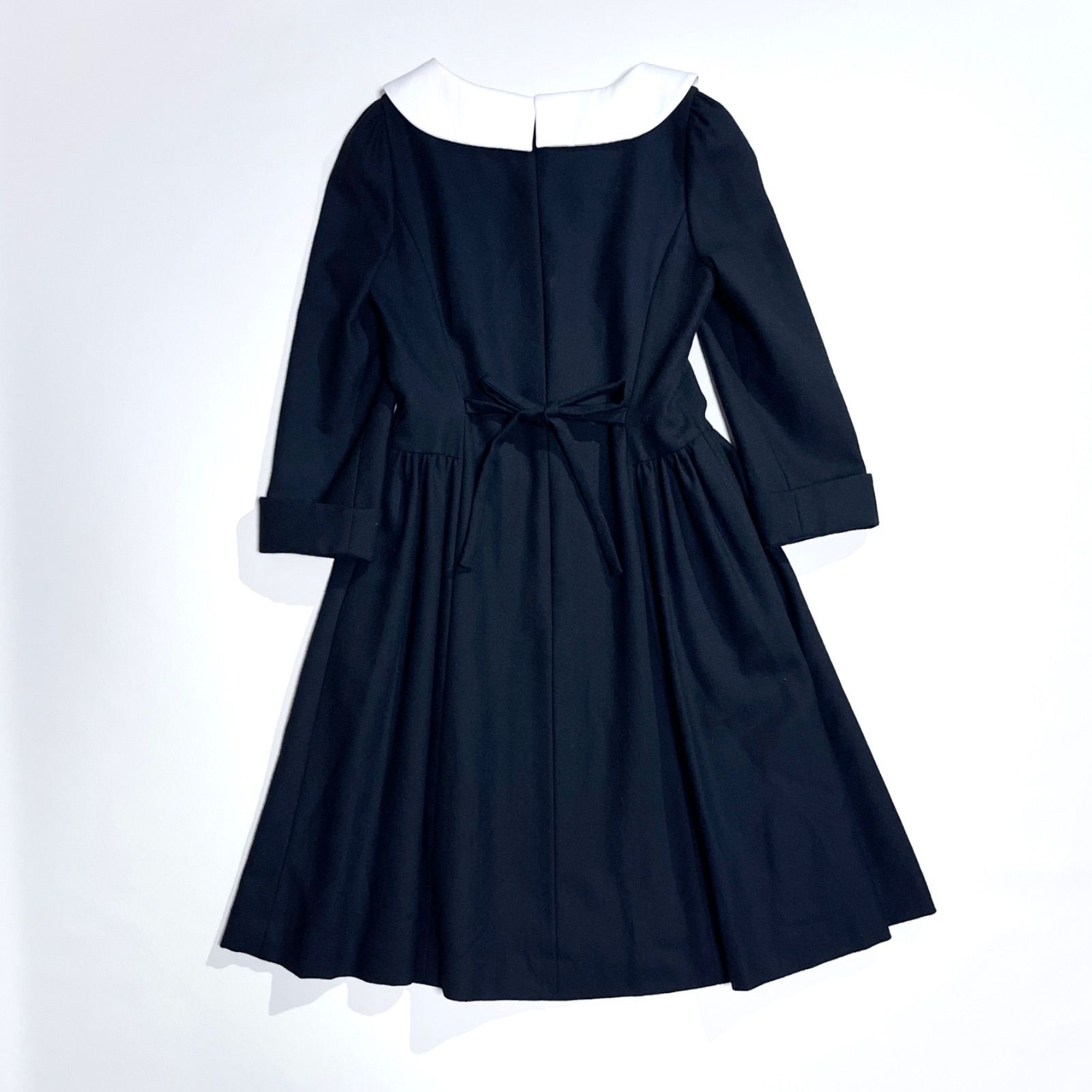 ウール ワンピース 膝丈ワンピース サイドギャザー 付け襟 取り外し可能 カメリアボタン 長袖 お受験ワンピース 日本製 made in japan バックリボン