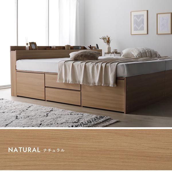 宮付き チェスト ベッド 通常丈ワイドキング240 SD ブラウン 薄型国産ポケットコイルマットレス付き 大容量 収納ベッド すのこ 寝具 組立品