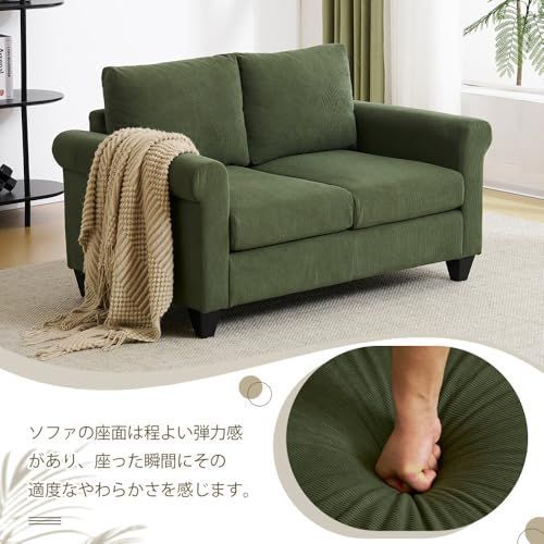 掃除機も通れる かんたん組立 ローソファ コンパクト 肘付き 2人掛けソファ 北欧 ヘッドソファー 幅126 cm 2人掛けソファー 収納付き 2人がけ ソファー グリーン ソファ オーエスジェイ OSJ