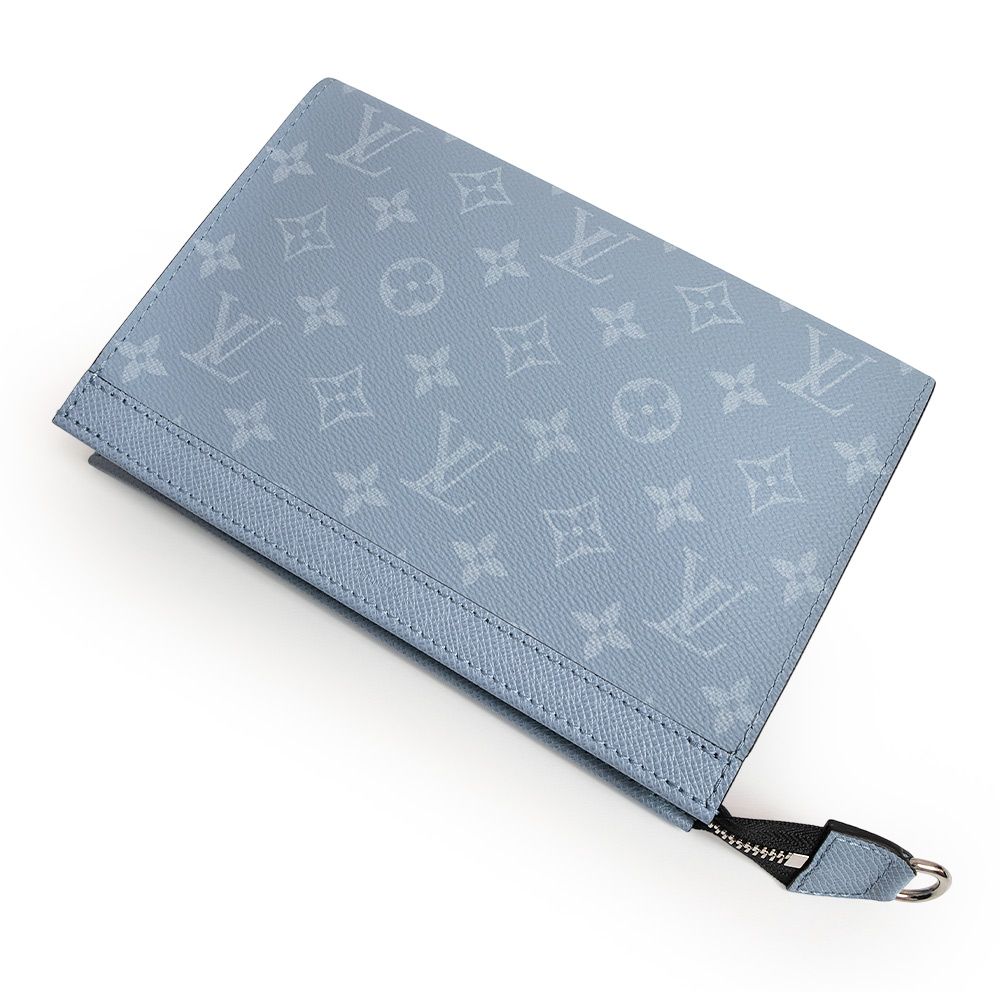 【商品紹介】モノグラムとタイガ・レザーを組み合わせ、爽やかなスカイブルーが季節感を添える「ガストン ウェアラブル ウォレット」。取外し & 調節可能なストラップ付きで、肩掛けや斜め掛けなど多彩な持ち方に対応します。コンパクトながら必要なアイテムをすっきり収められ、着脱式カードホルダーも備えた実用性の高いデザインです。シルバー金具が全体を上品に引き締め、日常使いから旅行まで幅広く活躍します。