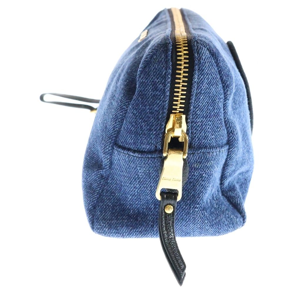 miumiu ミュウミュウ ロゴ メイクポーチ ケース 収納 デニム インディゴブルー ゴールド金具
