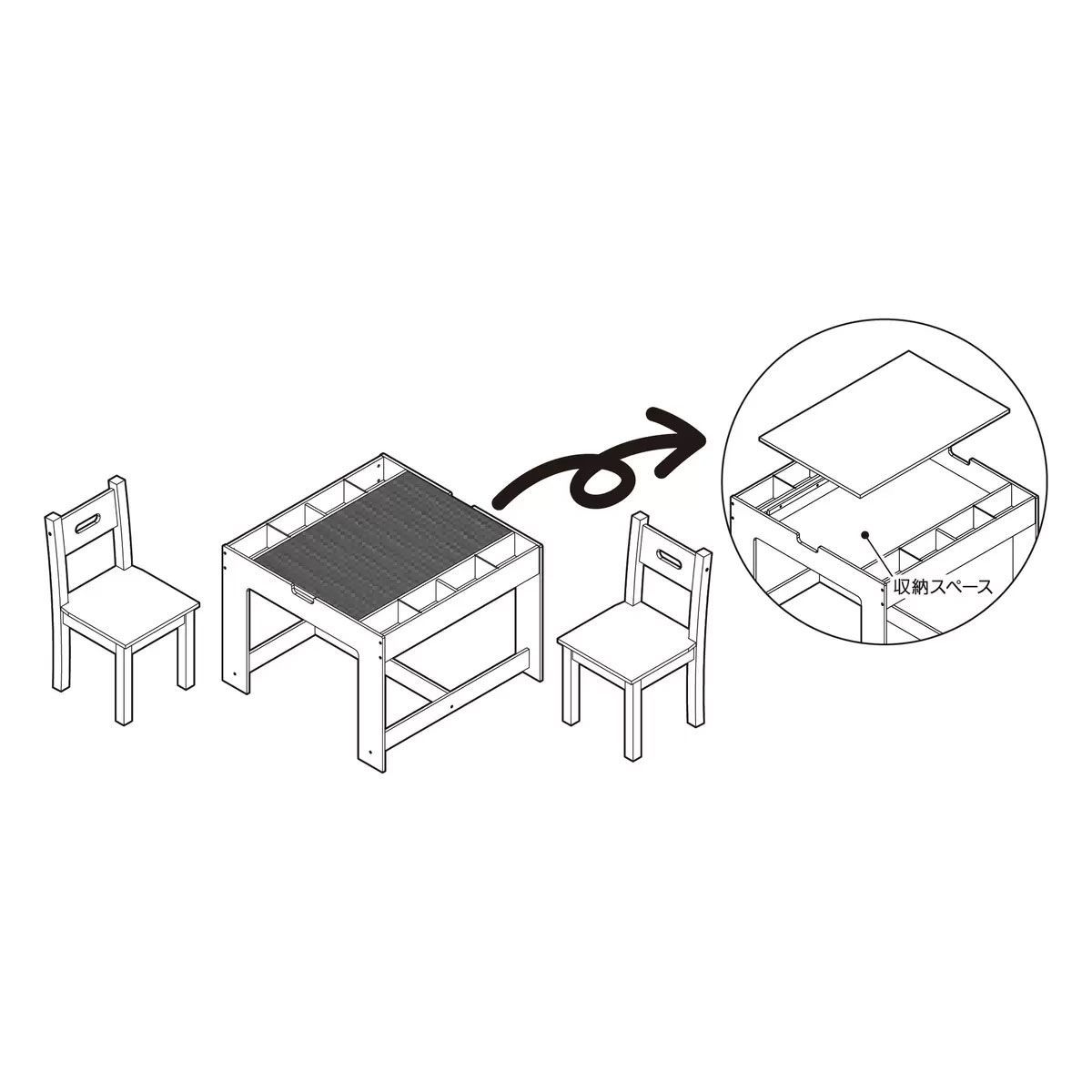 ブロック遊びテーブル チェアセット 天板2面 椅子2脚 収納スペース 組み立て式 基礎板テーブル