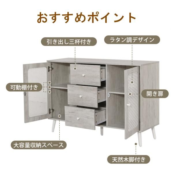 キャビネット サイドボード チェストラタン調 引き出し3杯付き 幅120 cm 木製 脚付き 収納棚 ラタン風 大容量 リビング 収納 整理タンス