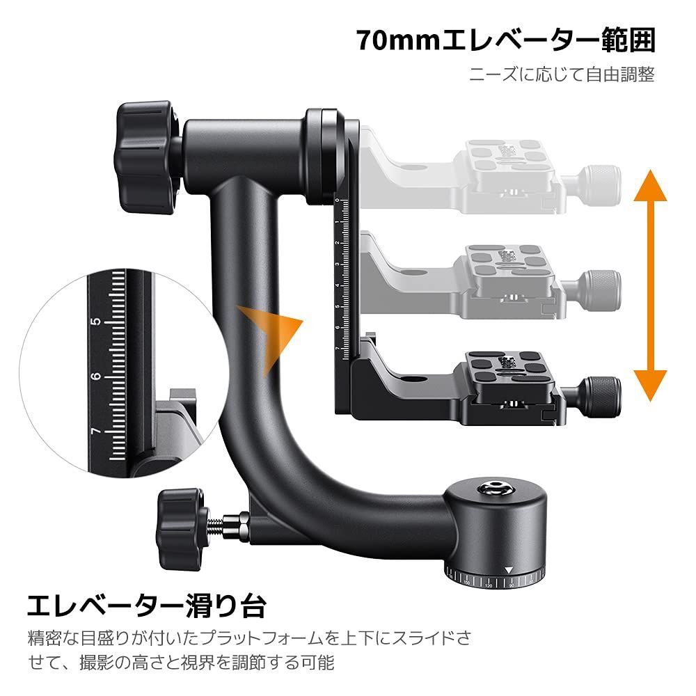 耐荷重20 kg スポーツに対応 野鳥撮影 野生動物 デジタル一眼レフカメラ用大型雲台 望遠レンズ 1 4 クイックシューバブルレベル 70 mmエレベーター範囲アルカスイス規格 360度回転 パノラマジンバルヘッド 金属製 ジンバル雲台 Concept