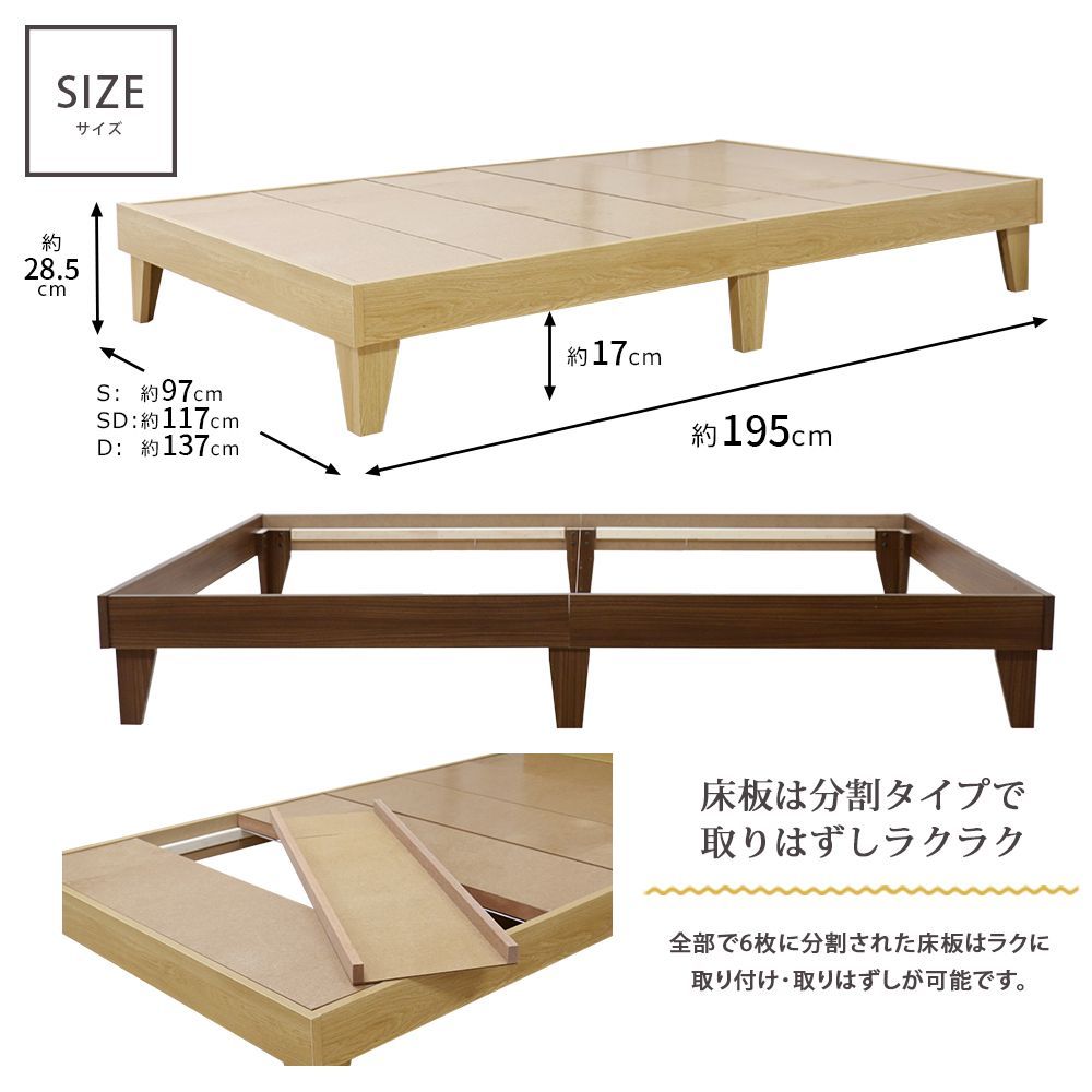 ・プレインベッド ヘッドレス フレームのみ S~D