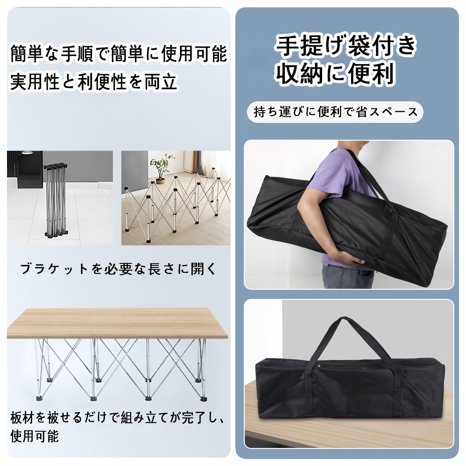 【使いやすい】:拡張可能な折りたたみスタンドの上に大きなボードを置くだけで、ワークスペースとして使い始めることができます。組み立ては非常に簡単でそれほど手間がかからず、すぐに作業台を組み立てることができます。