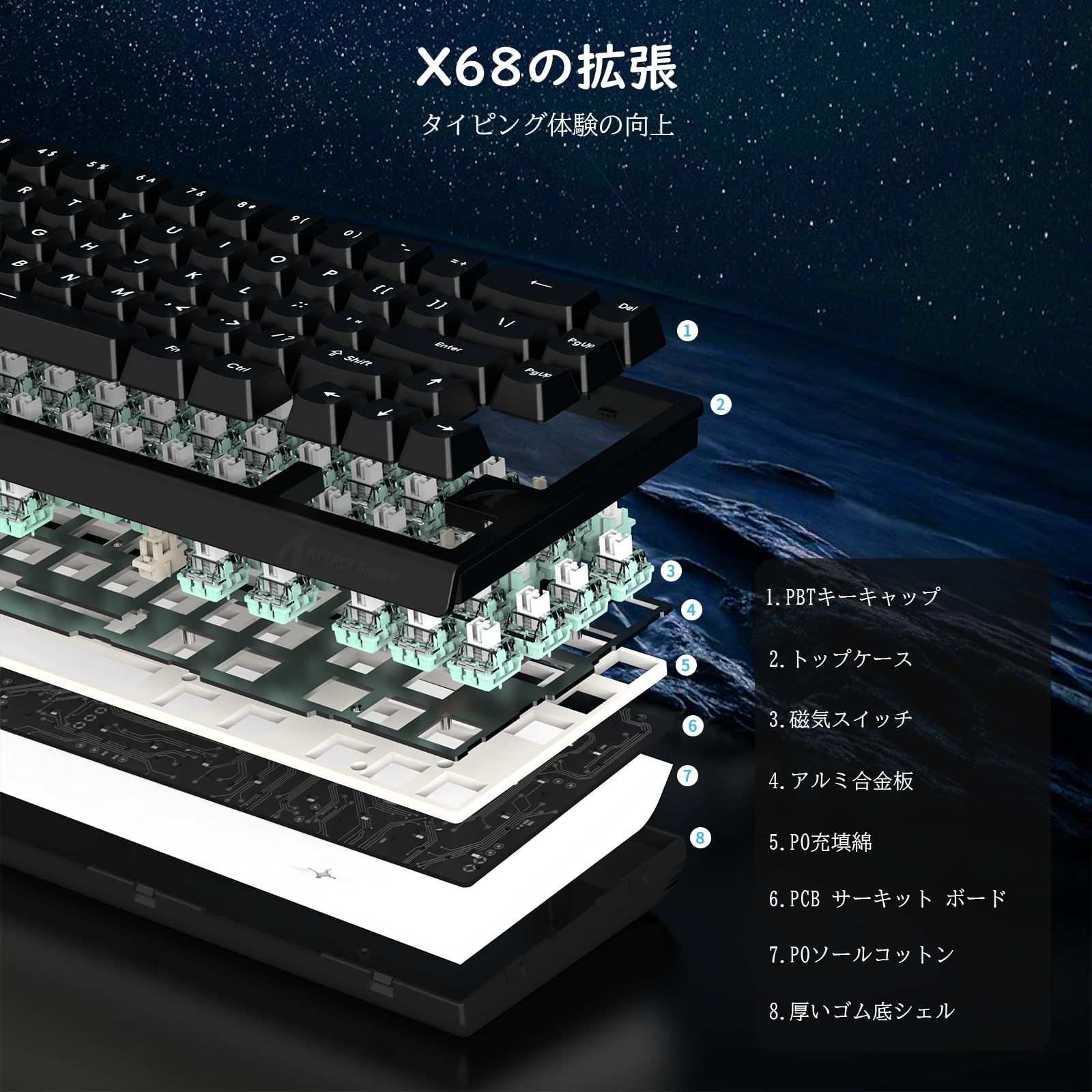 数量 SHARKx X 68 HEゲーミング磁気キーボード 磁気軸 8000 Hzポーリングレート 0.125 msレイテンシー 0.01 mmRT精度 0デッドゾーン snap ATTACK tap 128 Kスキャンレート カスタム トリ