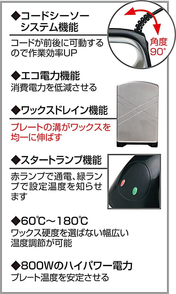 機能:コードシーソーシステム機能、エコ電力機能、ワックスドレイン機能、スタートランプ機能