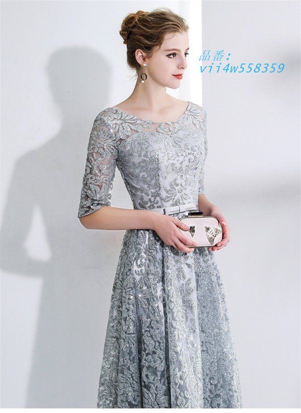 ドレス 大人 ピアノ 発表会 ロングドレス 演奏会 結婚式 母親 パーティードレス ワンピース フォーマルドレス イブニングドレス 30代 40代 50代 大きめ 親族 レース 袖あり 成人式 同窓会 お呼ばれ 演奏会用ドレス 二次会 フォーマル 披露宴 グレー 灰 大人