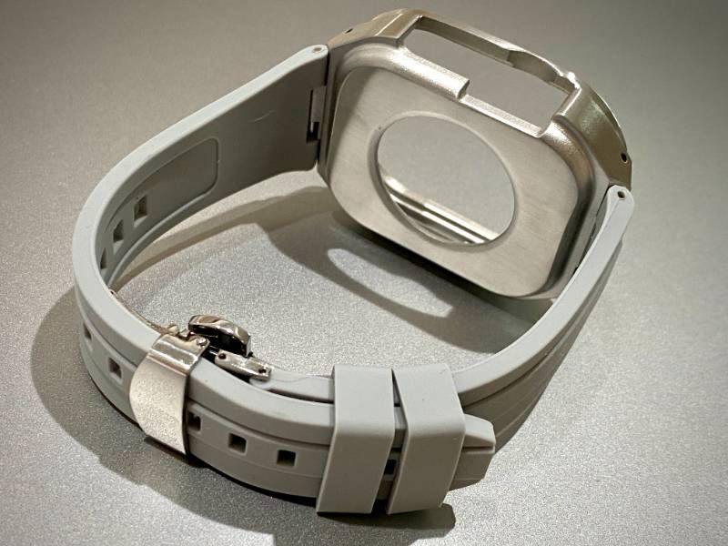 グレイシルバーAppleWatchカバーケース 脱着 簡単 保護 49㎜ Ultra カスタム ステンレス ベルト ラバー バンド アップルウォッチ対応