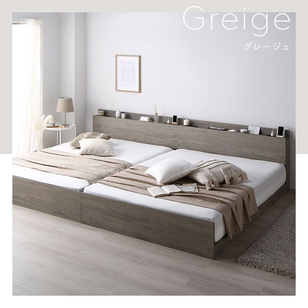ベッド ワイドキング 220 S SD 国産ポケットコイルマットレス付 ハード シャビーオーク 高さ調整可 コンセント 宮付 宮棚付 棚付 すのこ ベッドフレーム ローベッド すのこベッド フロアベッド ベット 寝具 インテリア家具 ベッドル