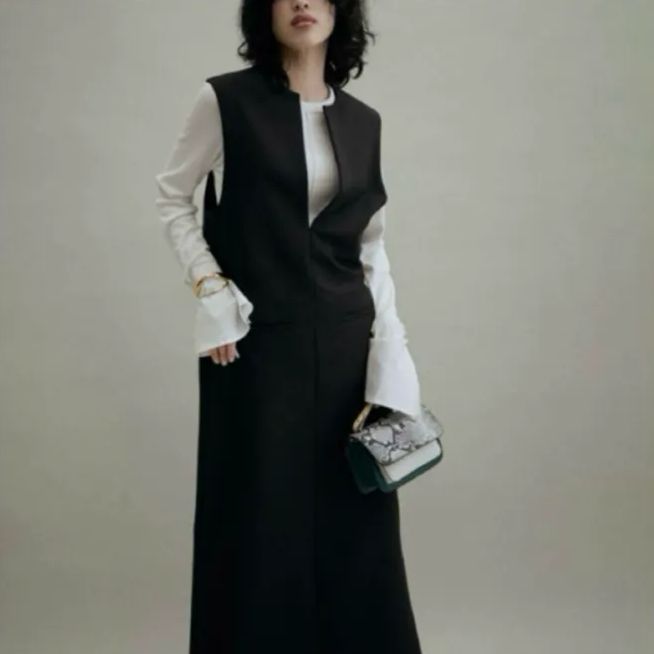《前後2WAY・シーズンレス》大人っぽく着こなせる上品シルエット。レイヤードしやすく着こなしの幅が広がる、きちんと見えも叶えてくれるロングワンピ-ス
