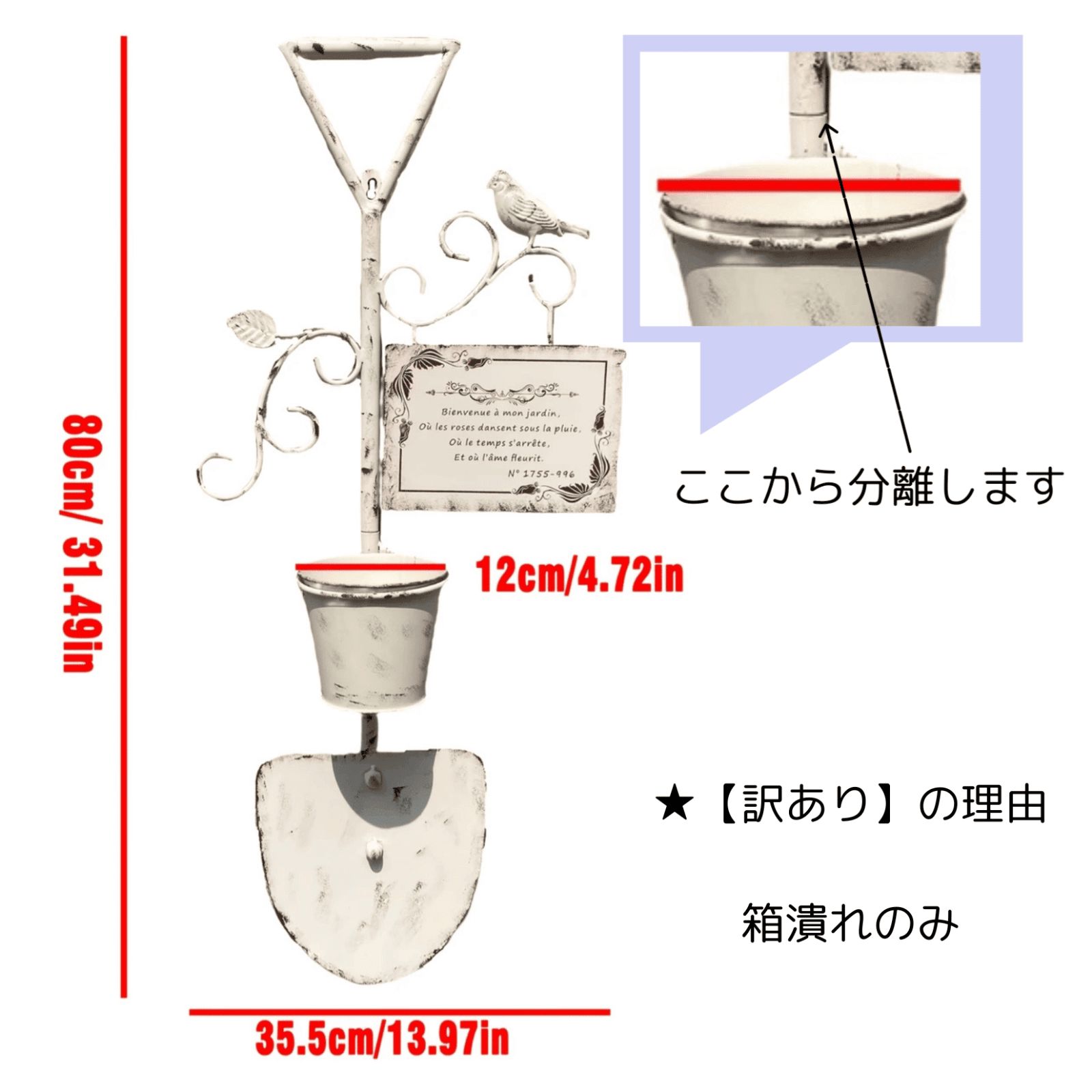 南仏プロヴァンス風 ウォールプランター アンティーク調壁飾り シャビーシック フランス語プレート 小鳥 可憐 ガーデン雑貨 シャベル形 アイアン アンティークホワイト インテリア