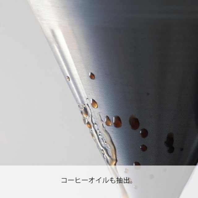 細かいエッチング加工を施したメッシュフィルターを二重に重ねたドリッパーです。ペーパーフィルターでドリップしたような透明感とメタルフィルターならではのコーヒーオイルを感じる味わいをお愉しみいただけます。