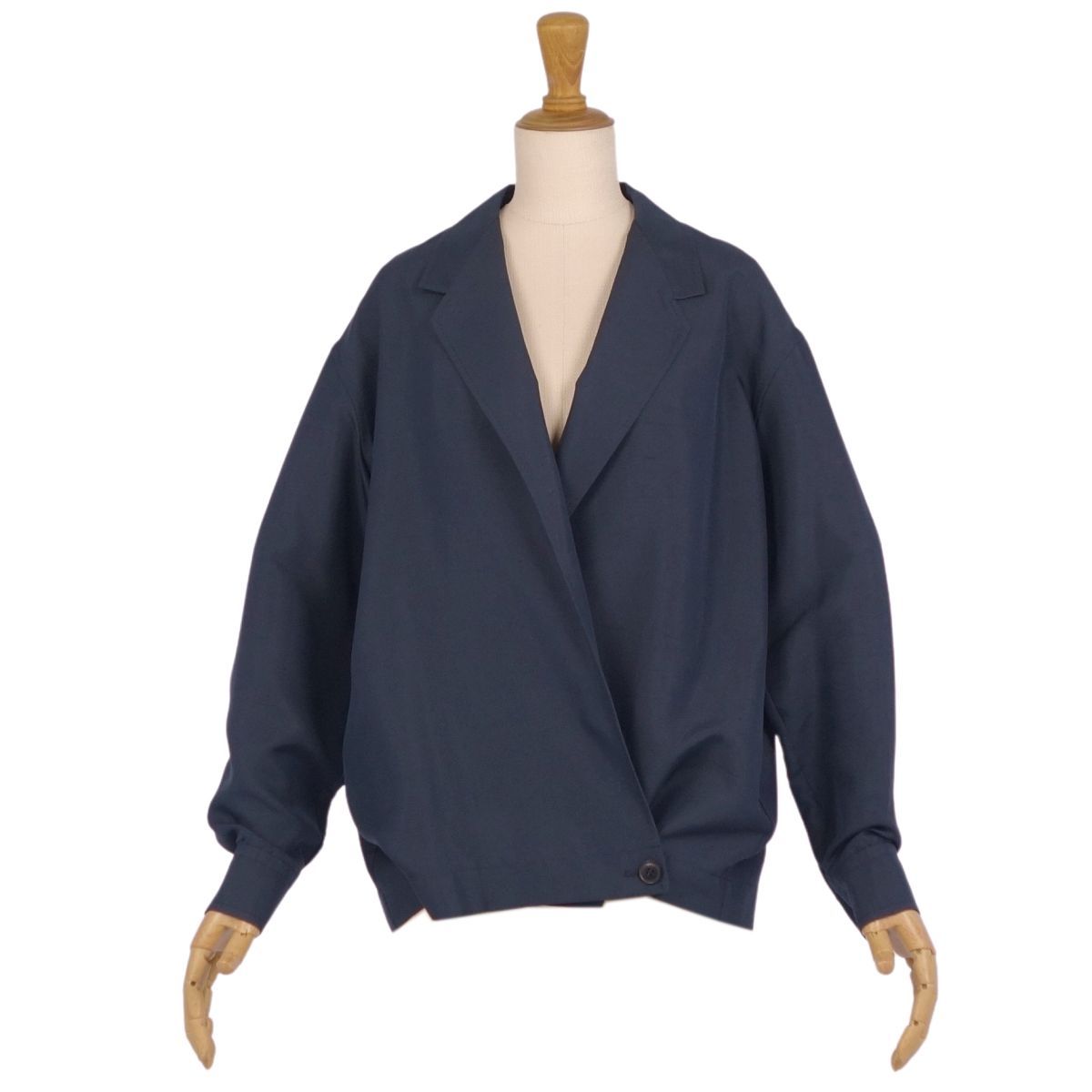 美品 エルメス HERMES シャツ ジャケット ロングスリーブ 長袖 シルク アウター レディース 36(S相当) ネイビー