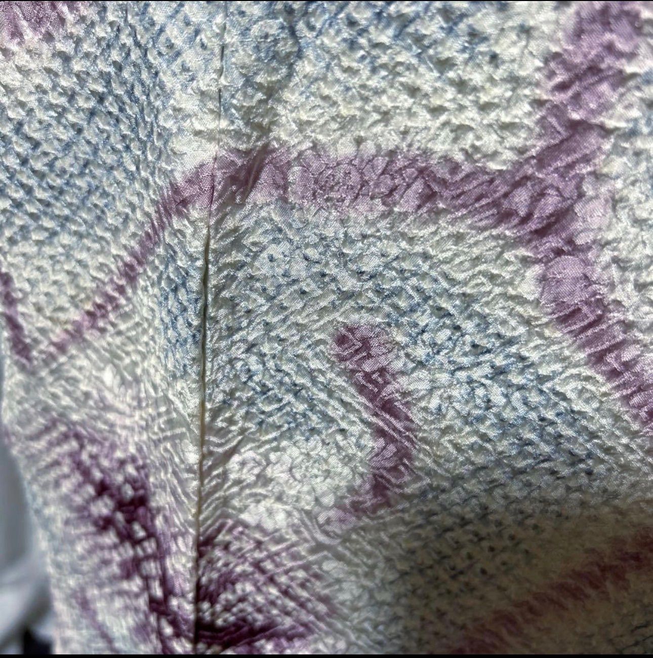 和裁士さんが普通丈の未使用総絞り羽織を、マチを無くし裏地を継いで長羽織に仕立て直した特注品です。