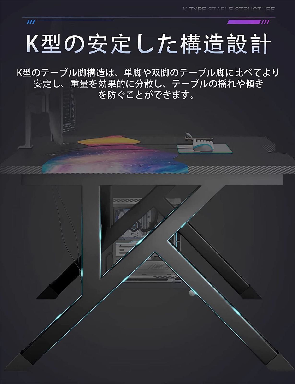 組立簡単 半完成品 学生に最適 子供 ホーム オフィス ワークステーション用 双方向ケーブル穴付き K型脚構造設計 炭素繊維板テーブルトップ 幅80 cm cm×奥行60 机 ゲーミングデスク パソコンデスク デスク Rshtong
