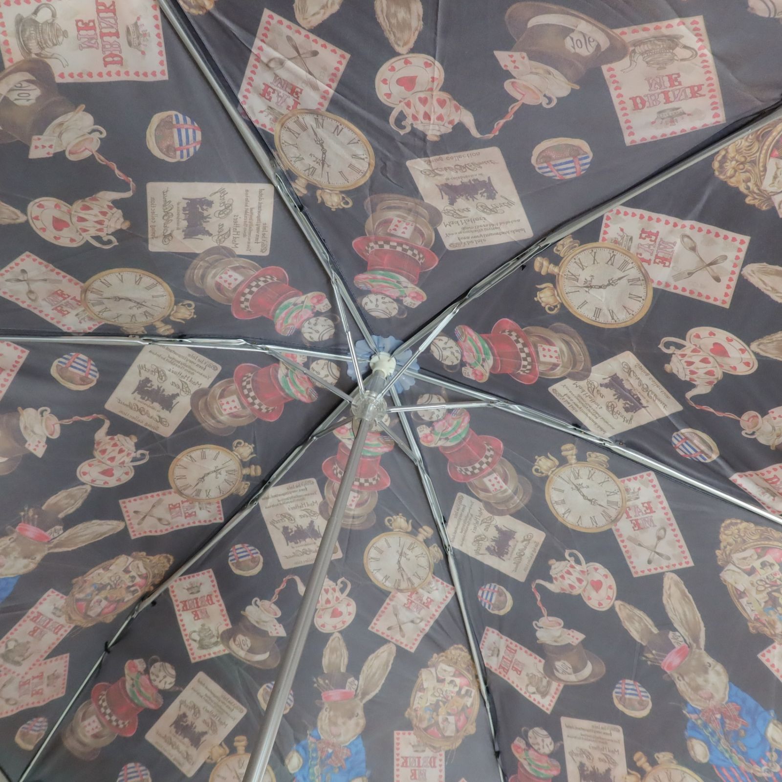 ピンクハウス うさぎとカード ティータイム 不思議の国のアリス柄 折りたたみ傘 黒系 k3737