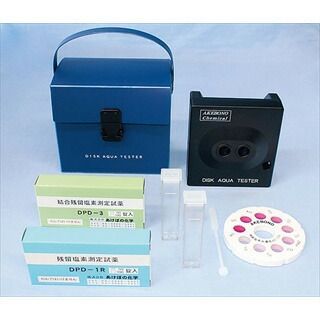 ●セット内容:コンパレーター×1、攪拌棒×1、ディスク×1試験管×2、DPD-1R試薬、DPD-3試薬各50錠、携行バッグ×1