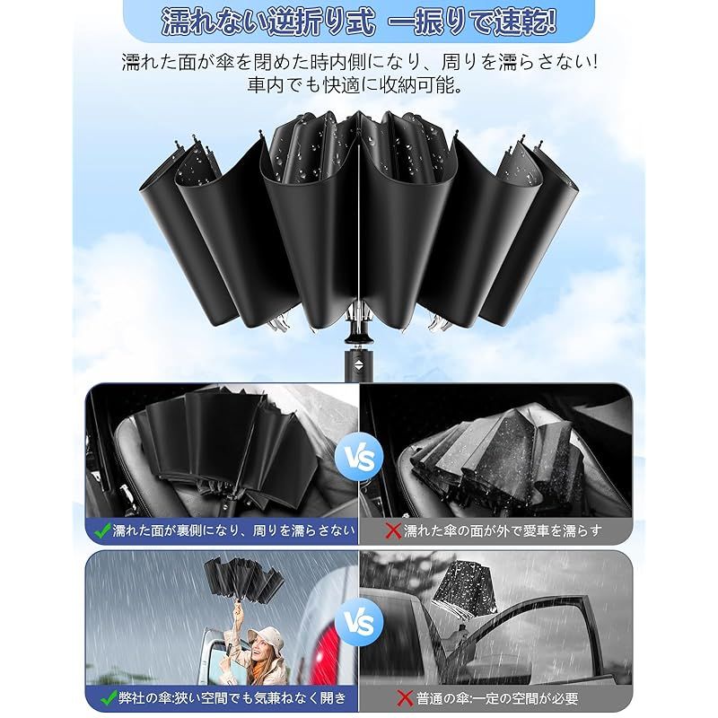 商品名:折りたたみ傘 おりたたみ傘 逆折り式傘 折り畳み傘 日傘 ワンタッチ 自動開閉 メンズ 大きい 10本骨 耐強風設計 男子日傘 UVカット 晴雨兼用 梅雨対策 台風対応 紫外線遮蔽 収納ポーチ付き メンズ レディース NSYS-Black-2025d4