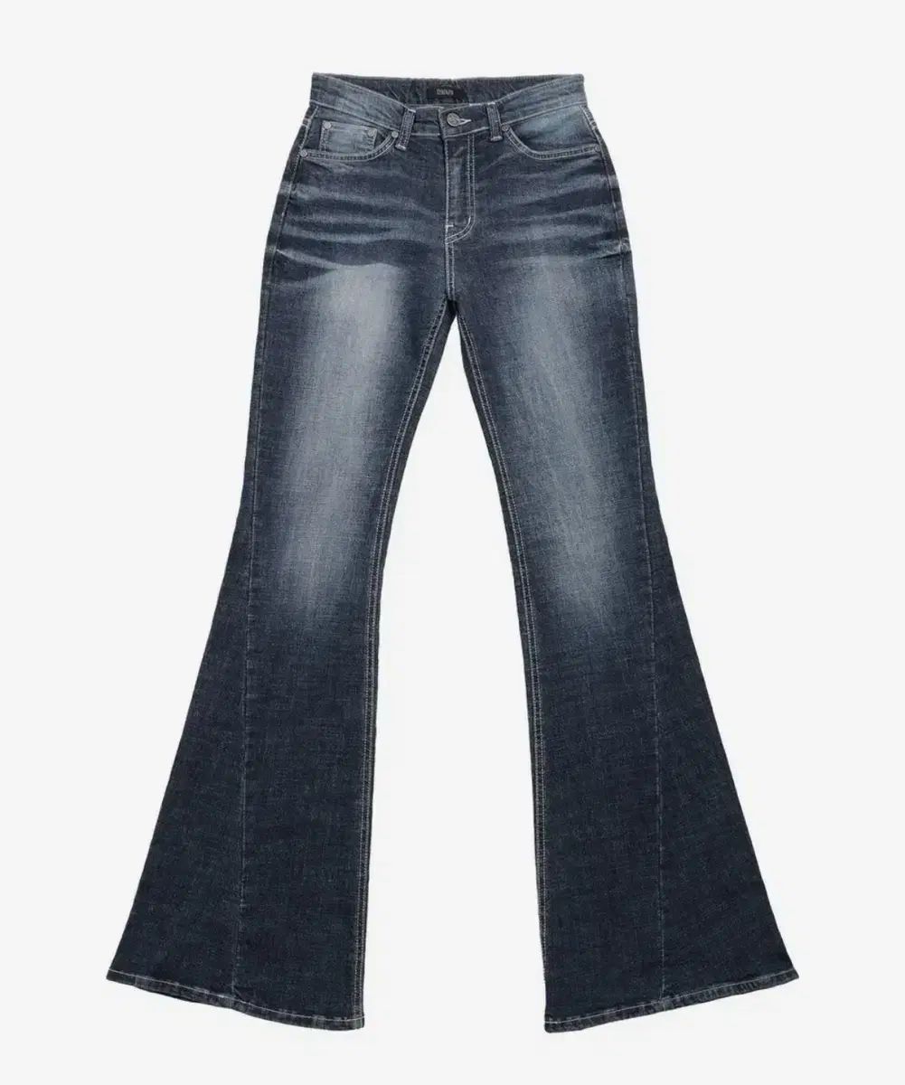 シネ ジーン ブーツカット キャットウォッシュ ディープブルー L