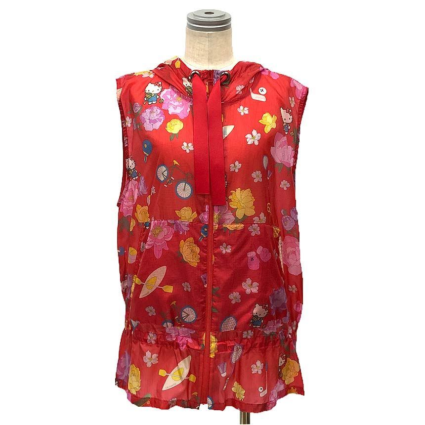 LEONARD SPORTS レオナール スポーツ フーディ ベスト 赤 レッド ナイロン ポーチ付き ハローキティコラボ サンリオ キティちゃん キティ レディース トップス aq 12012